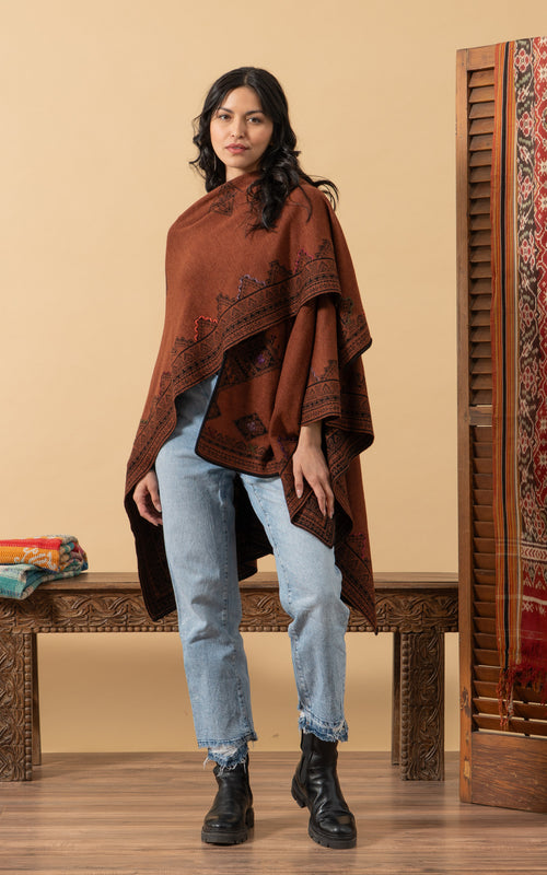 Alpaca Ruana, Navajo, Red/Black/Brown