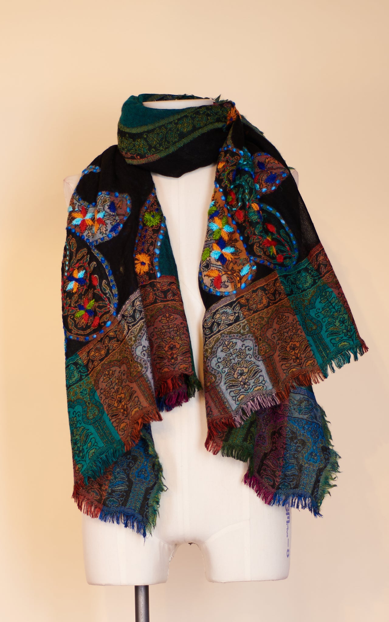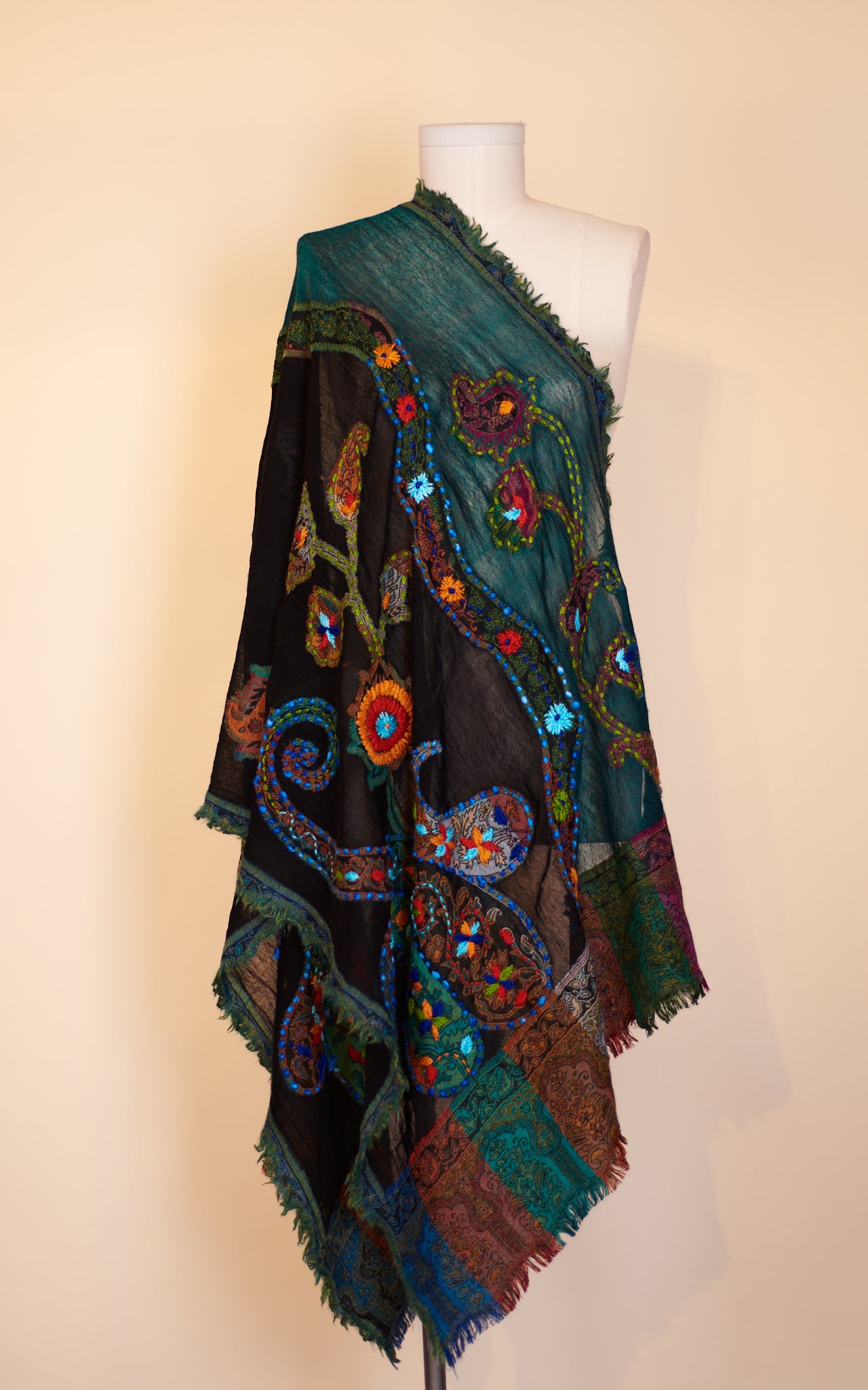 Boiled Wool Shawl, Embroidery, Persian Garden