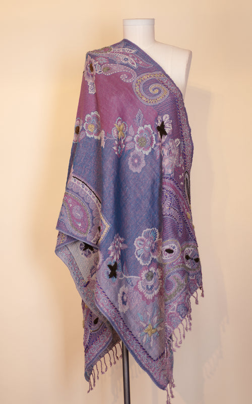 Boiled Wool Shawl, Embroidery, Lavender Love