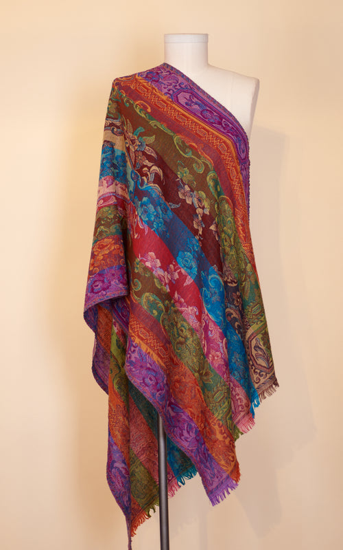 Boiled Wool Shawl, Embroidery, Persian Garden