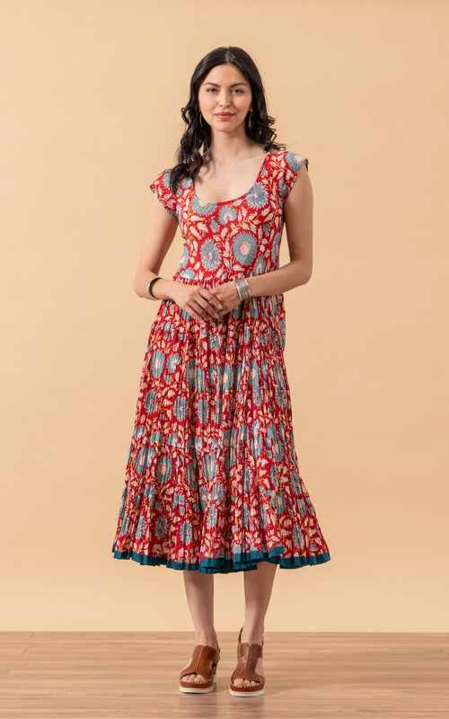 Baila Conmigo Dress, Cap Sleeve, Scarlet Calico