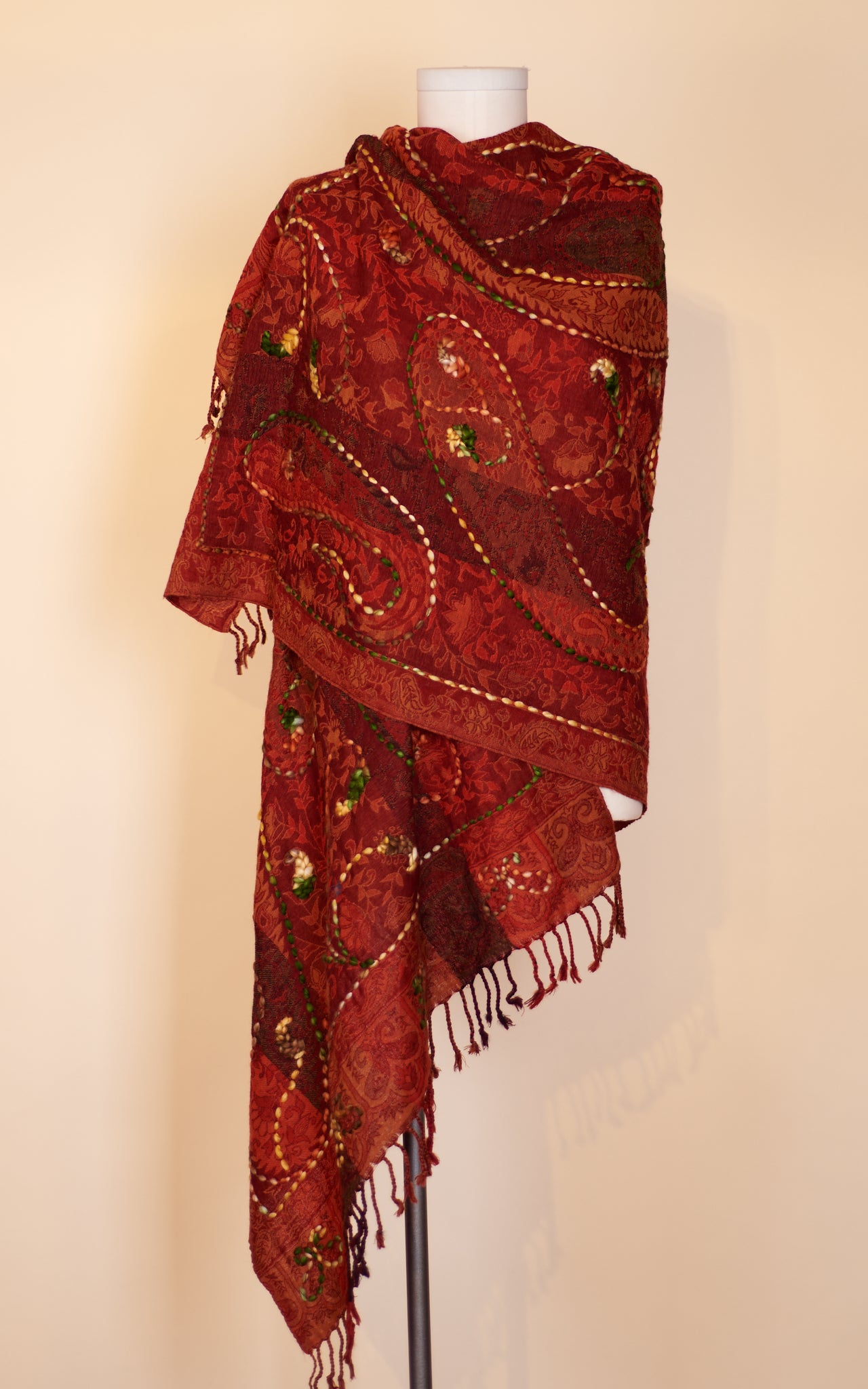 Boiled Wool Shawl, Embroidery, Autumn Vine