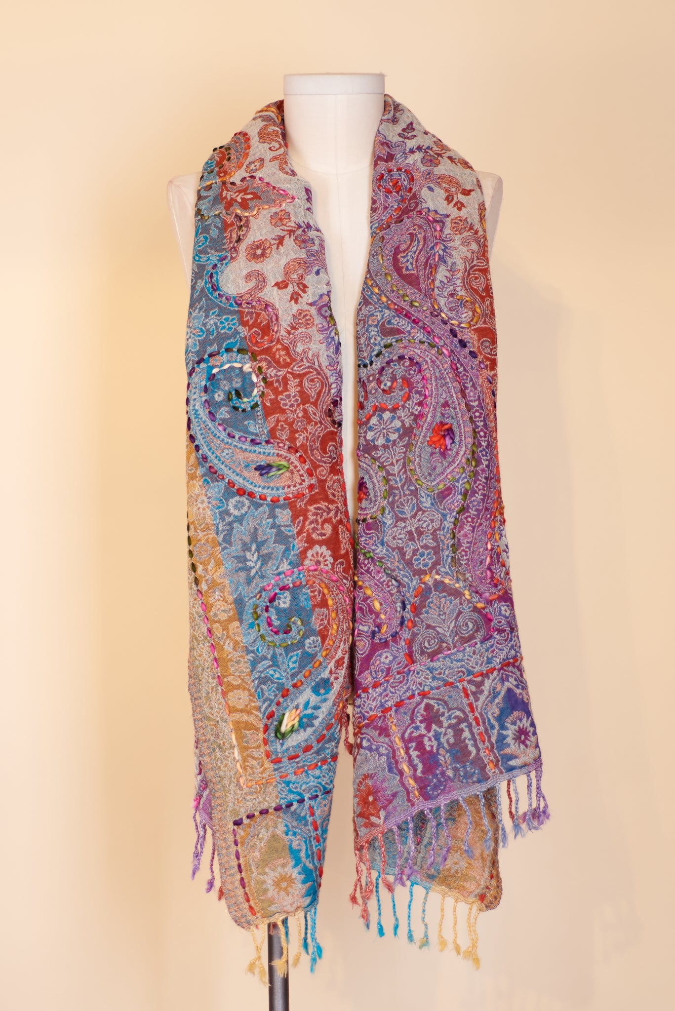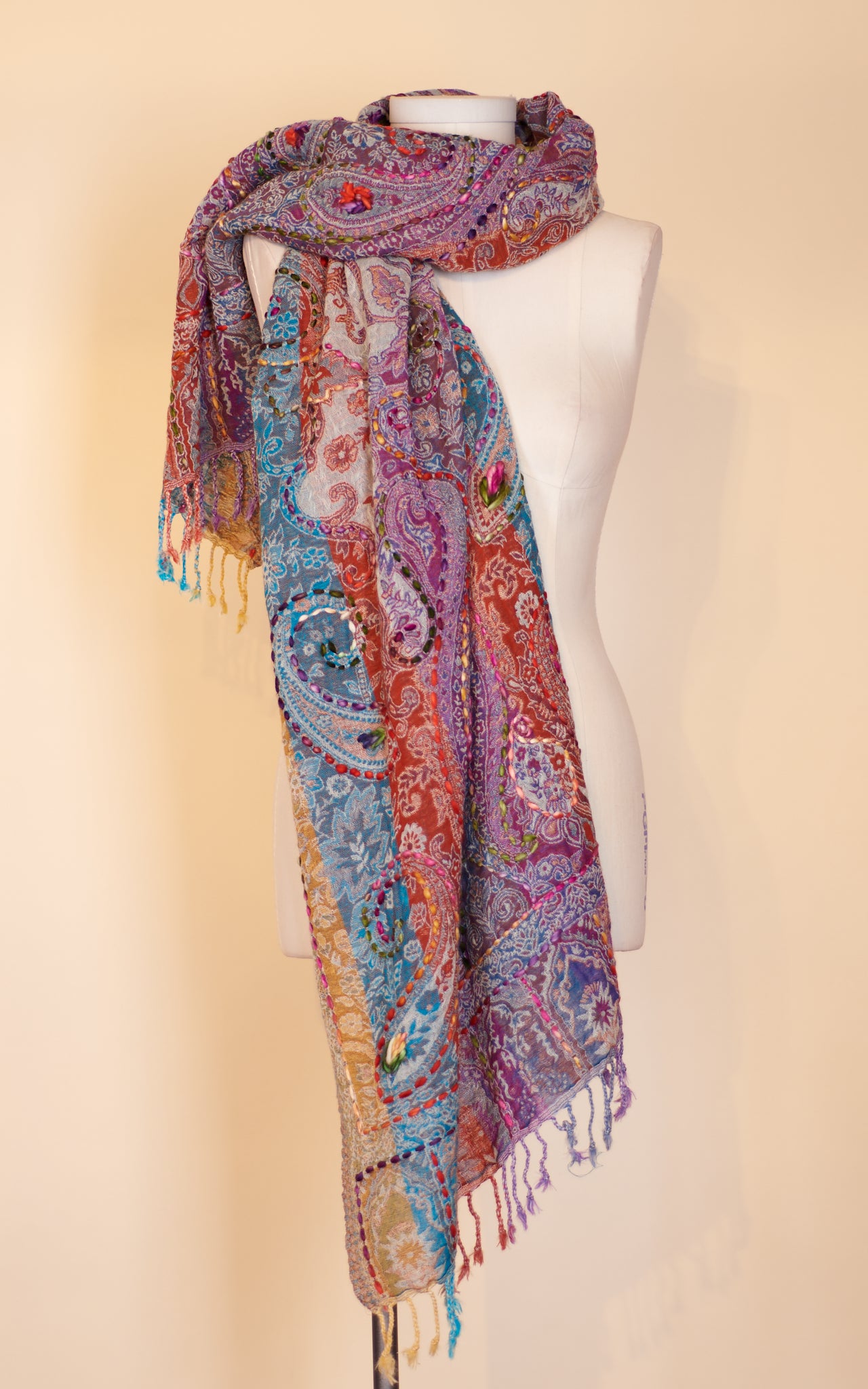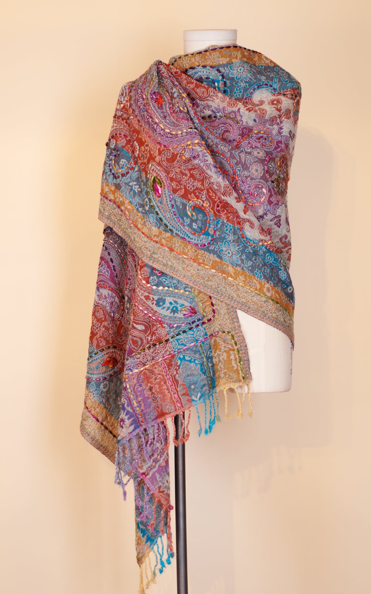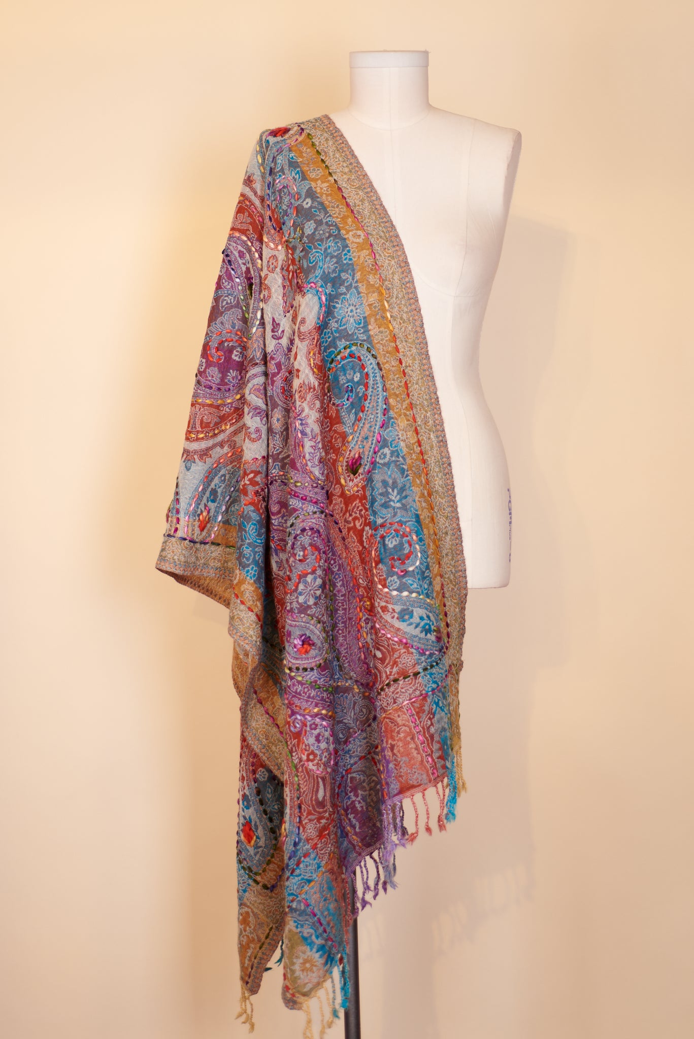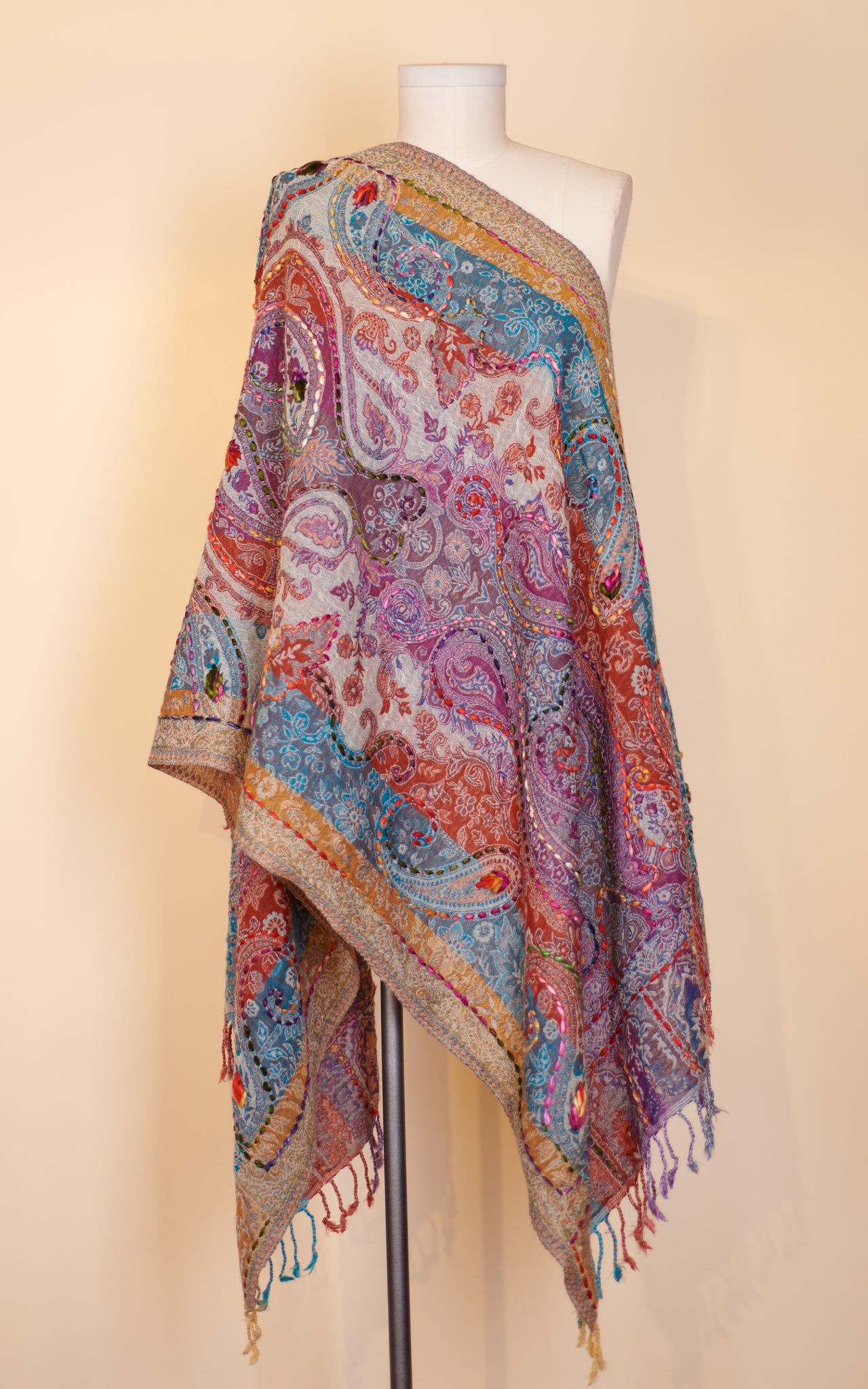 Boiled Wool Shawl, Embroidery, Cassie