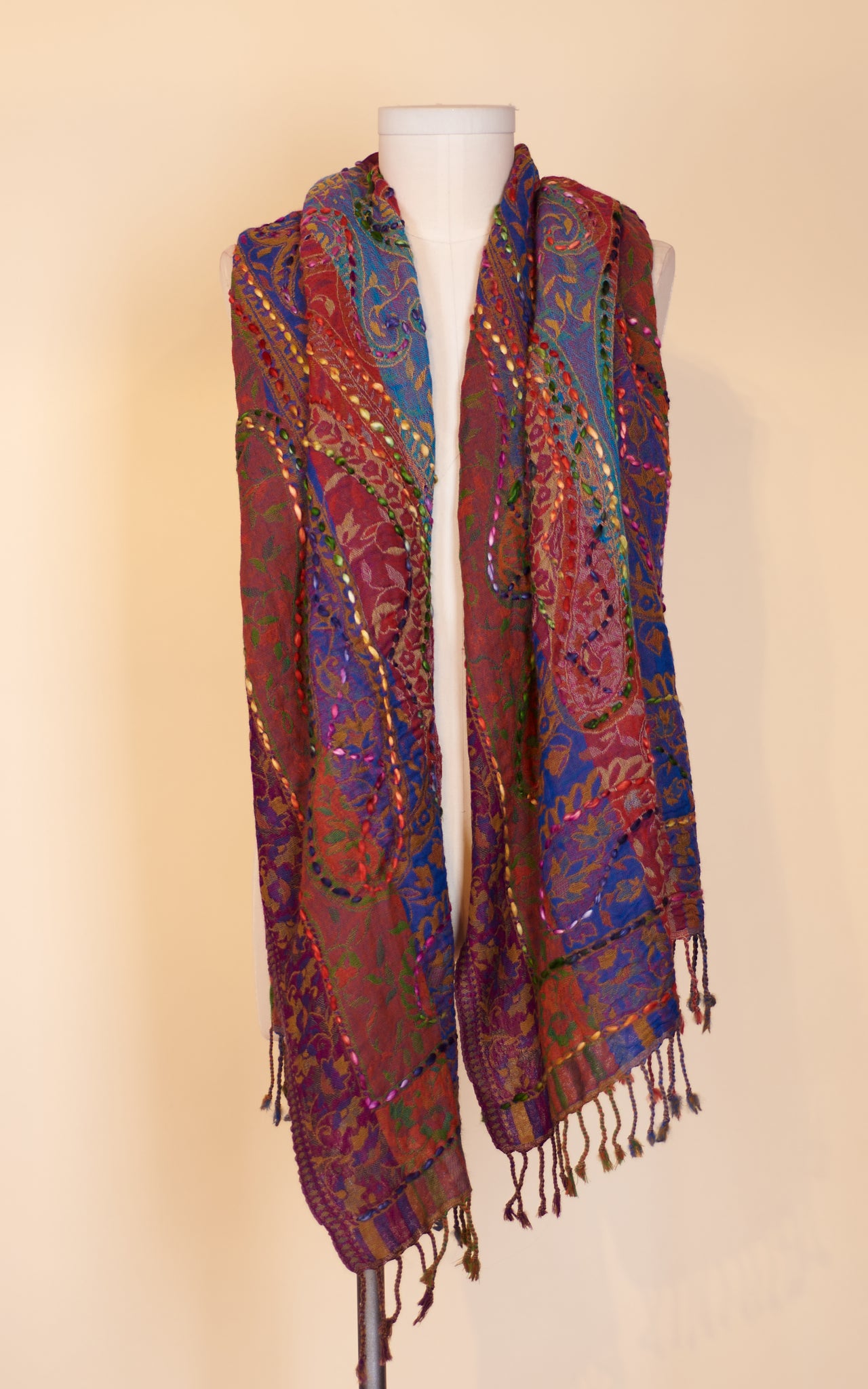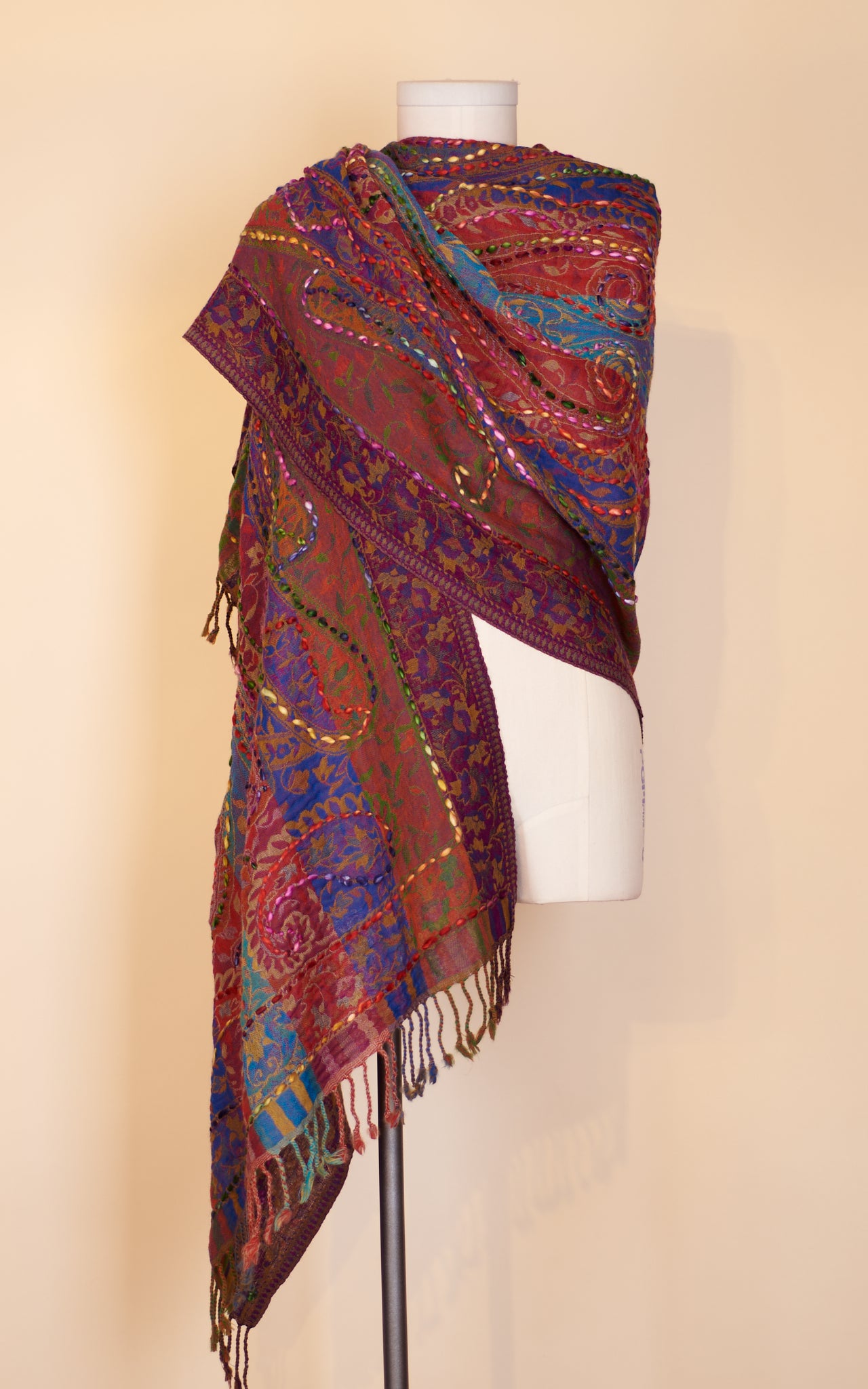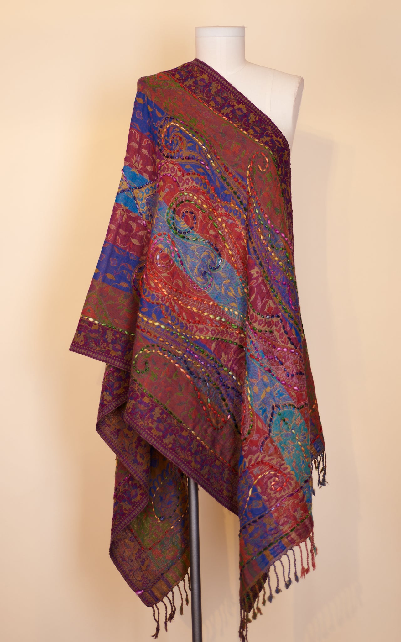 Boiled Wool Shawl, Embroidery, Plush Paisley