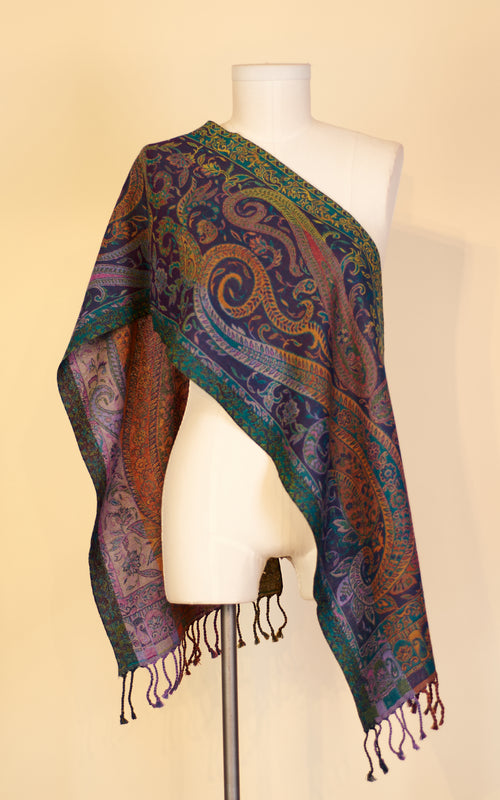 Boiled Wool Scarf, Multi Paisley