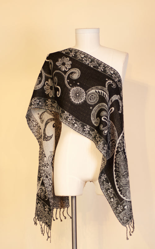 Tribal Shawl, Black Geometric