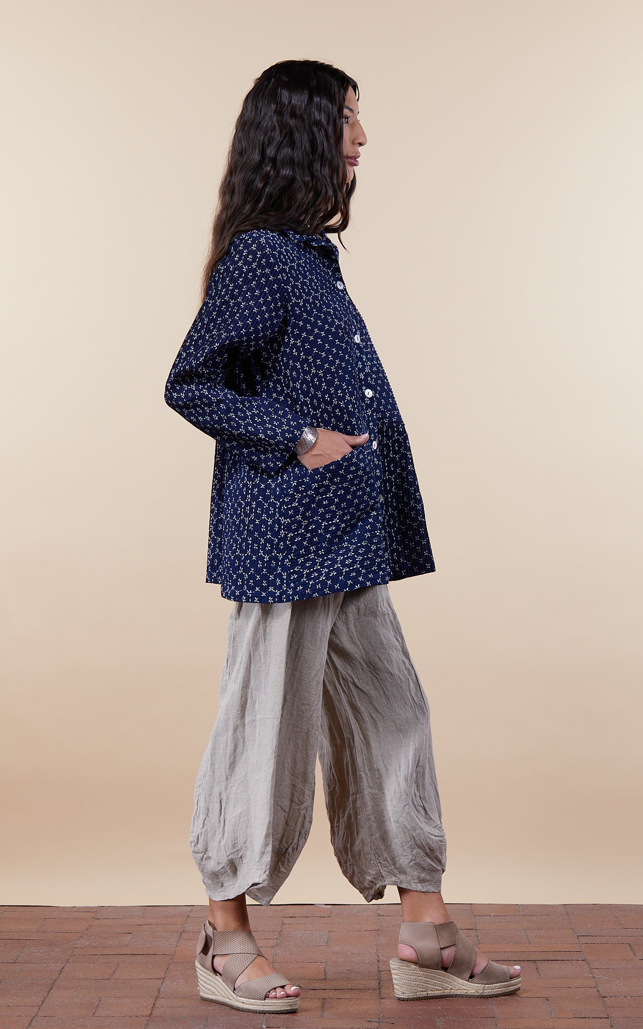 Pintuck Jacket, Mixed Direction, Indigo Floral